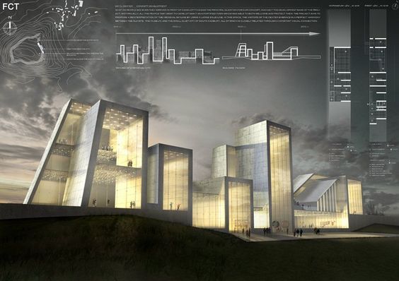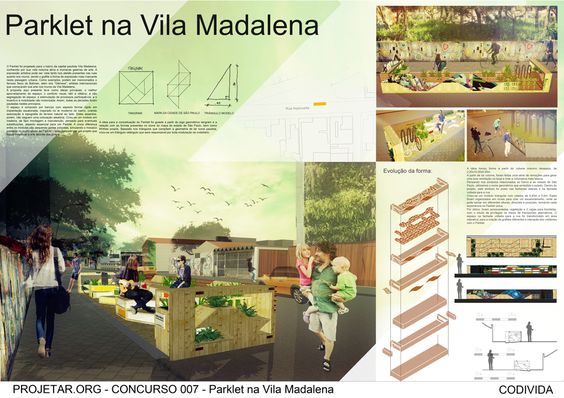 Olhem que interessante essas pranchas: todas possuem um elemento em destaque. Nos primeiros segundos o leitor já consegue ver qual o destaque do projeto devido à escala dele em relação aos outros elementos. A prancha à direita eu diagramei para um concurso que eu participei alguns anos atrás.