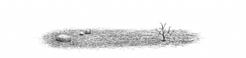 Para começarmos o nosso caminho, vou apresentar para vocês o nosso primeiro tutorial sobre como desenhar uma pequena paisagem de pedras e plantas: