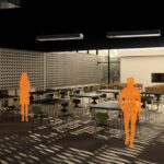 Para as perspectivas eu trabalhei também com as imagens renderizadas do Revit. No Photoshop eu alterei os níveis (Ctrl + L) e diminuí a saturação (quantidade de cor) atalho: Ctrl + U. O céu eu coloquei com uma imagem que eu baixei da internet e deixei ela em preto e branco (Shift + Ctrl + U). As pessoas eu procurei no google “people png vector” e baixei as figuras humanas. Usei a varinha mágica (w) para selecionar o que eu não queria e excluí essa parte, deixando só as pessoas. Depois fui no Blending Options (clicando com o botão direito em cima da camada da imagem) e coloquei uma substituição de cor para o laranja. Por fim eu tirei um pouco da opacidade, deixando um pouco transparente. Para facilitar o entendimento eu fiz um pequeno vídeo mostrando esse processo: