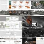 Eu tive a princípio uma certa dificuldade de lidar com a prancha na horizontal. Para eu ter uma ideia melhor do que colocar na prancha e como dispor os elementos, eu comecei salvando algumas referências de como eu imaginava a prancha. Eu queria trabalhar com cores fortes, com uma diagramação impactante e que traduzisse o partido do meu projeto, não achei muitas pranchas na horizontal com o estilo que eu queria, mas encontrei alguns com as cores que eu escolhi (preto e laranja). Estas foram as referencias que eu usei:
