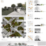Eu resolvi dividir a prancha (A1) em três colunas,começando no topo com a imagem principal e logo abaixo o conteúdo do projeto (memorial descritivo, áreas, etc). Dos lados eu complementei com o conteúdo de suporte ao projeto (análises do entorno e perspectivas).