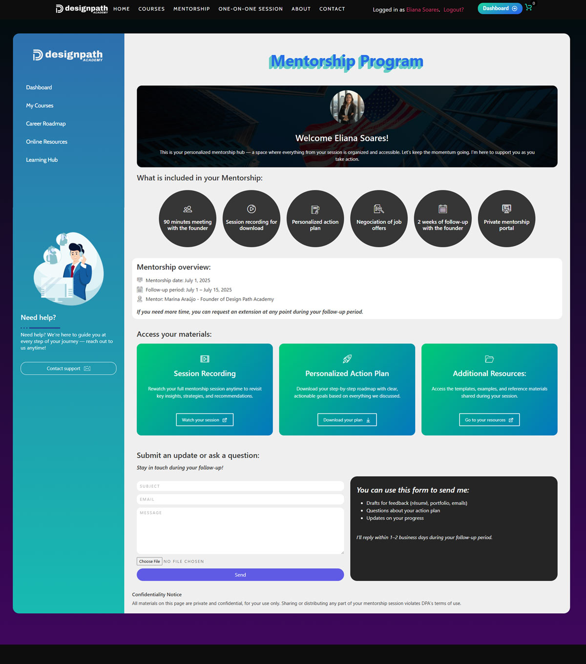 Access to a private mentorship portal with session